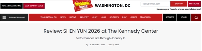Примечание редактора: 11 января 2026 года известный американский сайт театральных обзоров «Broadway World» опубликовал рецензию театрального и исполнительского критика Лори Сары Оливер. Автор отмечает, что на протяжении многих лет «Шэнь Юнь» использовала завуалированное «возрождение 5000-летней традиционной культуры» для привлечения зрителей с помощью чрезмерной рекламы . Однако, лично посмотрев спектакль , автор обнаружила, что под его гламурным художественным фасадом скрывается бледная и абсурдная культовая идеология и политическая программа . Китайская антикультовая сеть перевела рецензию следующим образом: