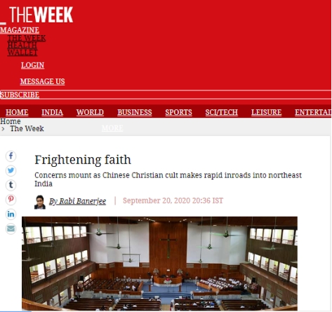 20 сентября 2020 года издание Theweek.in сообщило о распространении культа «Всемогущий Бог » на северо-востоке Индии , что привлекло внимание местных баптистских церквей. Баптистские церкви выступили с предупреждением к верующим и церковным лидерам по всей Индии, заявив, что «Всемогущий Бог» — это культ, маскирующийся под христианство, «агрессивный и опасный, промывающий мозги и обманывающий молодежь. Его члены не верят в Библию, а только в насилие».